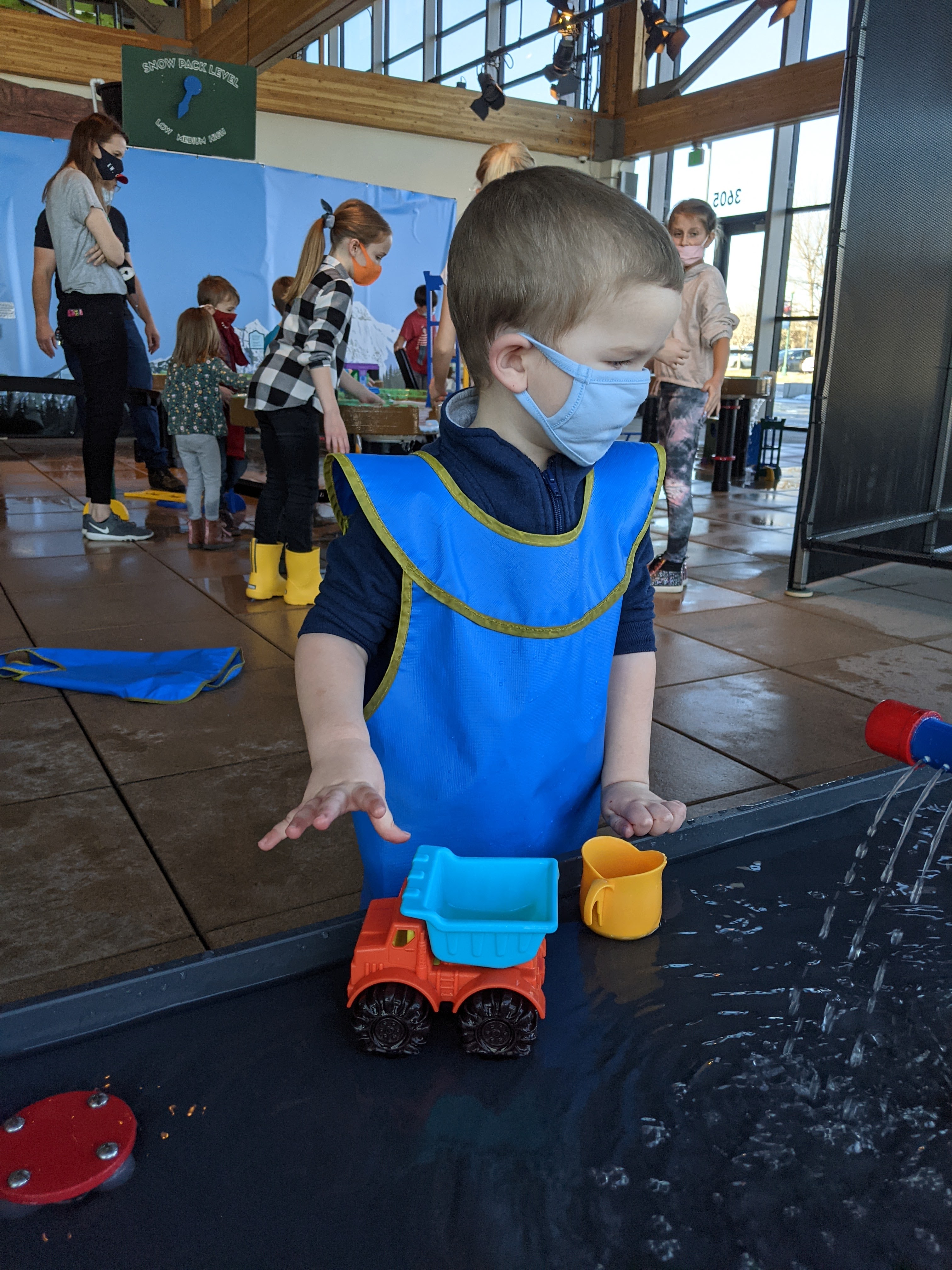 Greyson at the water table in the Museum of Natural Curiosity